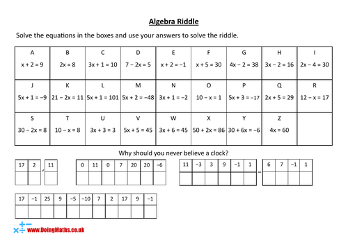 Algebra Riddles Ks3 Maths Worksheets Teaching Resources